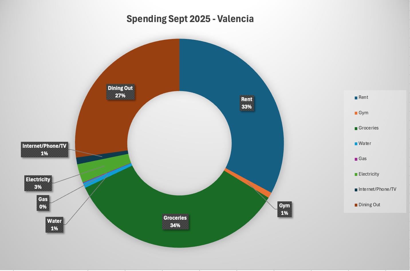 We eat out a lot — usually 3–4 times per week. Different cuisines, new restaurants, dinners with friends… Valencia makes it too easy.