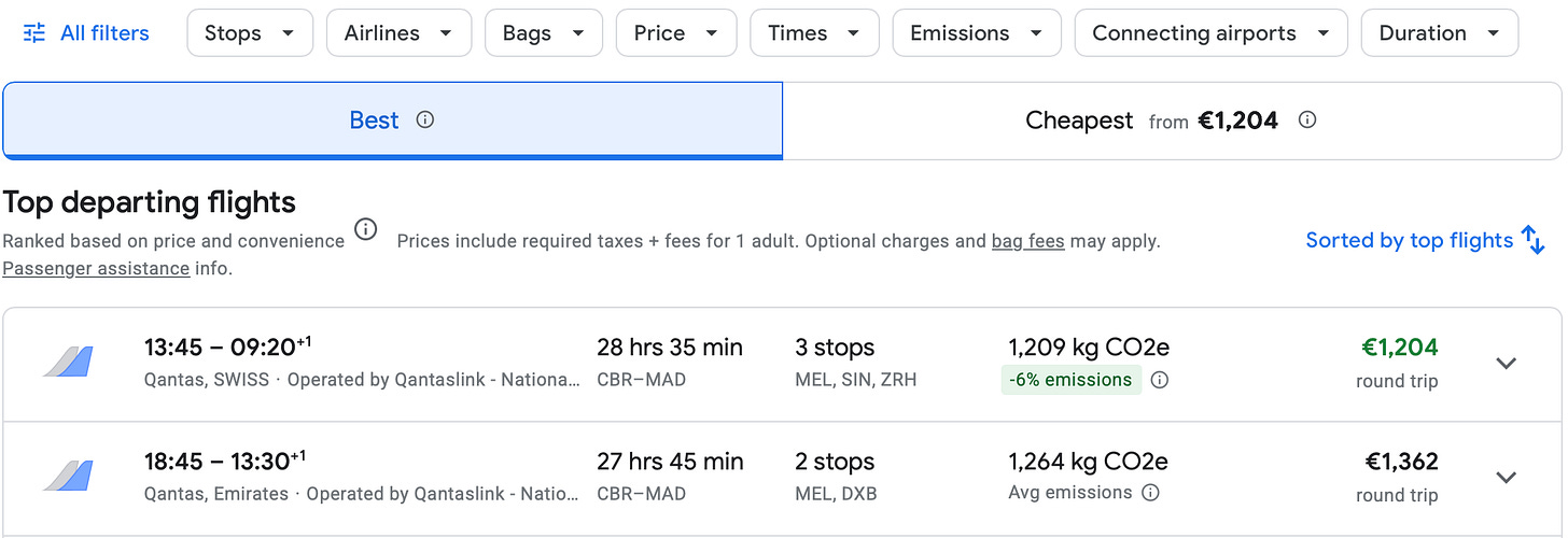 And because I’m a generous legend, I’ve done the heavy lifting for you. Here’s 6 seconds looking on google flights.