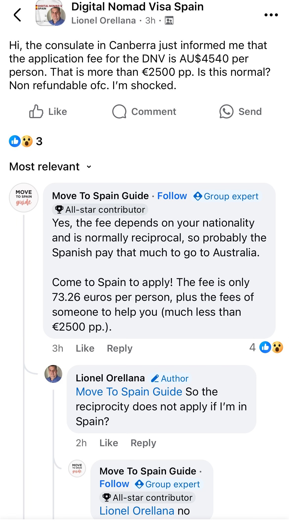 So, our mate Lionel shares that the Spanish consulate in Canberra quoted him AU$4,540 per person to apply for the Spain DNV. That’s over €2,500 each—and worst of all, it’s non-refundable.