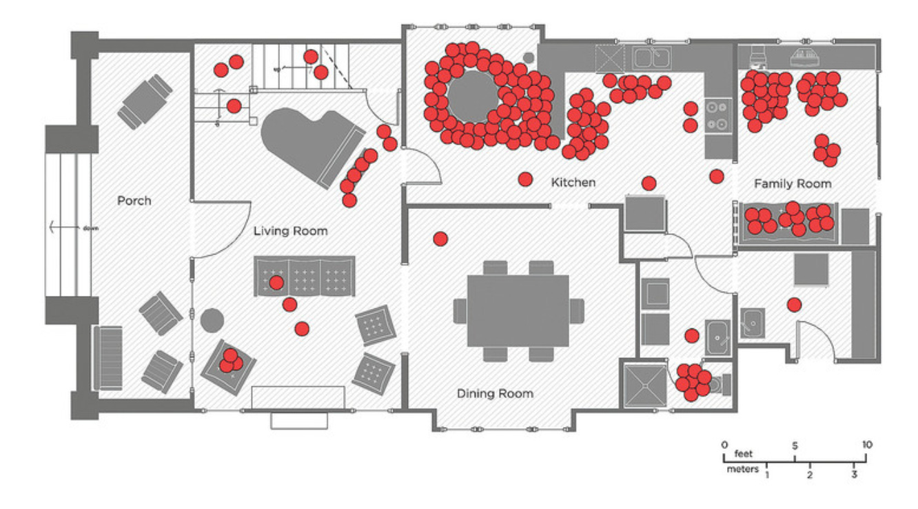The HeatMap above is from a US study. The study examined 32 middle-class families over the course of four years - 2014, 2015, 2016, and 2017 respectively. A part of this study monitored and collected data on where in the home people spend the majority of their time. The results are fascinating. Look at all that unused space. What areas of your home would be missing red dots? Worth thinking about.