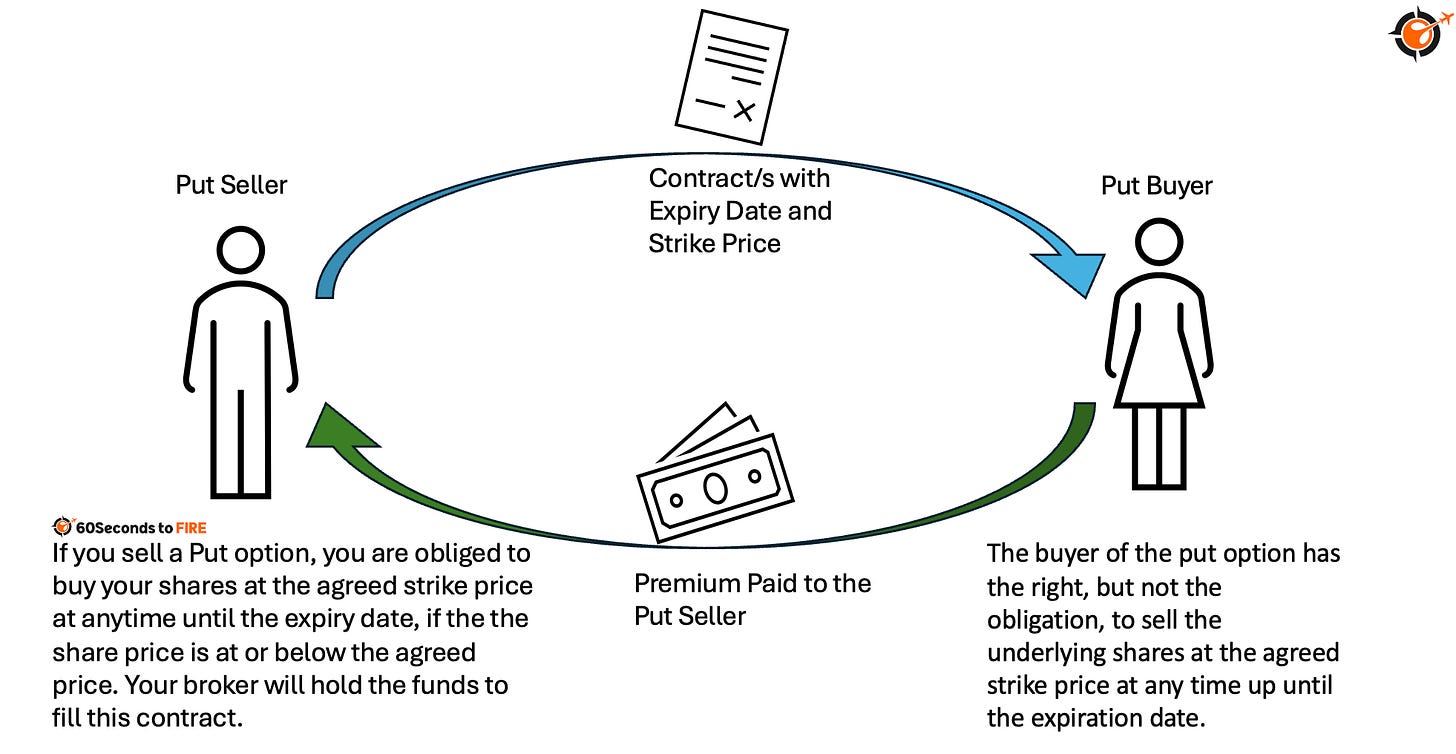 An Option is a financial contract that gives the buyer the right, but not the obligation, to buy or sell an underlying asset at a specific price by a set date. For the seller, an option is an obligation to fulfill the terms of the contract if the buyer chooses to exercise it. Sellers of options collect a premium for taking on this obligation, creating the foundation for earning income. This premium is the regular income that we are looking for to cover our living costs whilst our portfolio grows untouched.