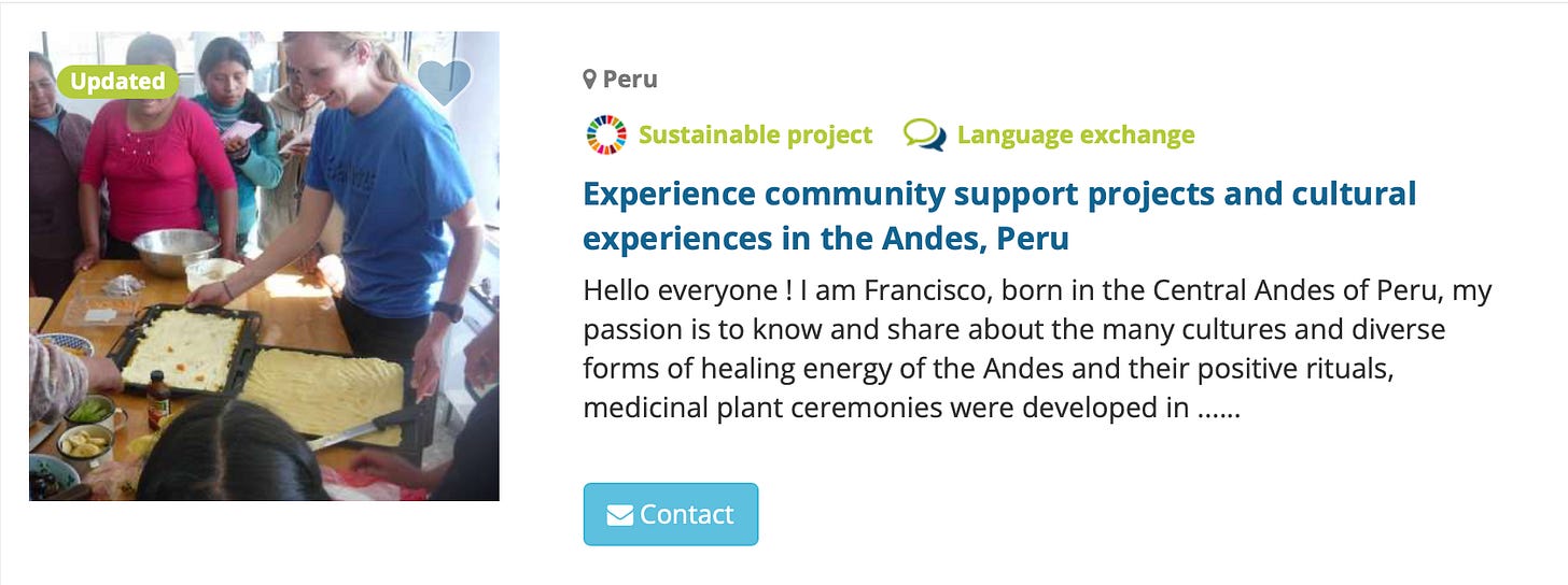 A community-based platform where travelers can find volunteer opportunities at hostels, NGOs, and eco-villages in exchange for accommodation and other benefits.